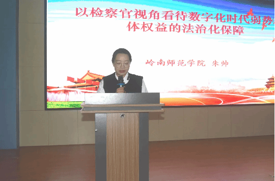 为了进一步推进与岭南师范学院“检校共建”深入开展,促进法治教育与检察实践相融合,近日,湛江市检察院与岭南师范学院共同召开了主题为“以检察官视角看数字化时代弱势群体权益的法治化保障”的共建研讨会。岭南师范学院法政学院院长刘鑫淼和法政学院法学系师生,市检察院案件管理与法律政策研究室主任朱罗成和全市检察官代表,共200余人参加了研讨会。会议在岭南师范学院法政学院召开,由市检察院案件管理与法律政策研究室副主任李景儒主持。
