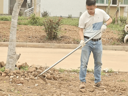 劳动践初心,在实践中感悟思政力量。活动伊始,志愿者们迅速分为寻石组、清理组、搬运组三支队伍,对园区内积存的石块、枯枝、塑料垃圾展开全面清理。学院领导与基地工作人员率先垂范,与志愿者们一同挥洒汗水,用劳动诠释责任与担当。经过两小时的协作奋战,30余筐垃圾被清理,基地环境焕然一新。这不仅是一次体力劳动,更是一堂生动的“行走的思政课”。志愿者们以实际行动践行“劳动创造美好生活”的价值理念,在为禁毒教育基地注入生机时,也在以实际行动回应“为人民服务”的时代号召。李德深书记表示:“思政教育的本质是将理论转化为行动力。当学生用双手改变环境、用汗水服务社会时,他们正在完成从知识学习到价值认同的跨越。”这种沉浸式实践让青年学子在直面社会治理难题中找到现实答案,真正实现了“在做中学、在学中悟”的教育目标。