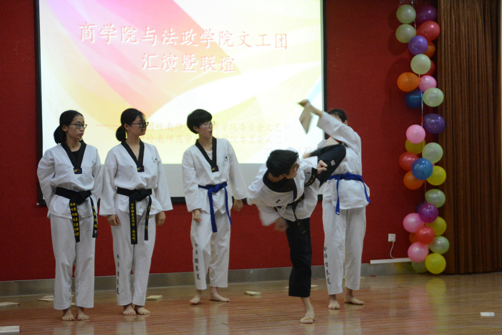 此次汇演暨联谊活动分为“绚烂青春”和“美丽艺术”上下两个篇章,活动的节目内容丰富,形式多样。在动感的音乐伴奏下,跆拳道协会成员的一招一式都那么舒展豪放、洒脱自如,脚踢木板时的豪迈赢得观众们热烈的喝彩声,充分展示了跆拳道的无穷的魅力和当代大学生强健的体魄。我院晴天文工团的话剧《偶像还是明星》,凭借充分的准备、专业的表演、丰富的情节内容获得了观众们的强烈认可,现场的掌声与喝彩声彼此起伏。伴随着一阵阵掌声,歌曲演唱、相声、话剧等12个精彩的节目为观众们呈现了丰富的视听盛宴。