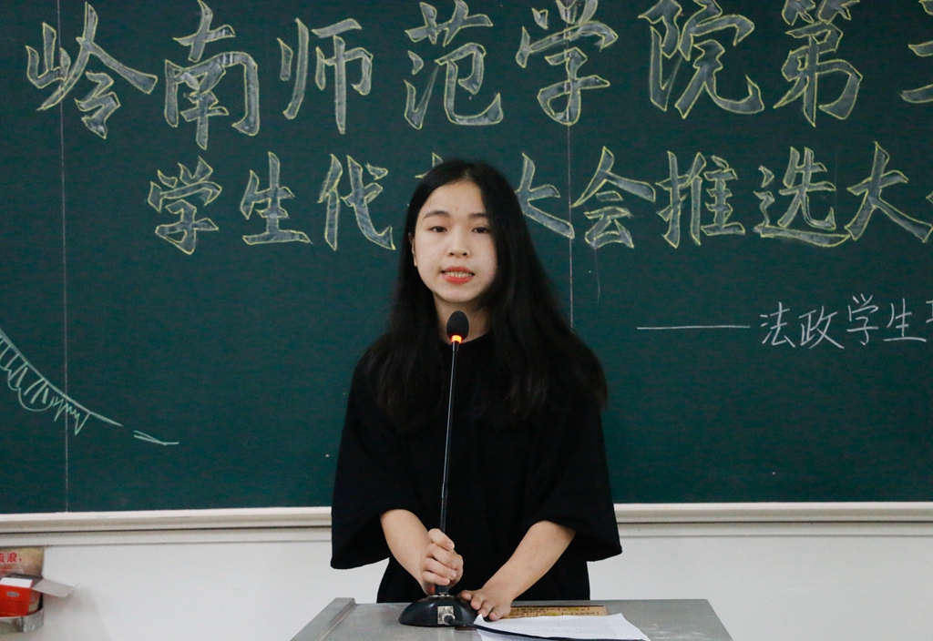 在选举人代表发表竞选演讲的过程中,来自16法学2班的陈天伦与来自16社工1班的张琼珠等同学分别就大学成长经历与主要成绩进行阐述,表明了自身全心全意做好学生代表工作,为学校民主管理建设做出贡献的坚定决心。