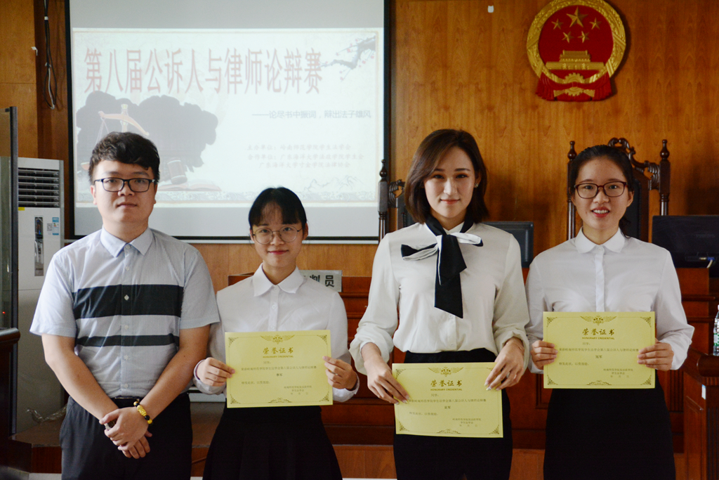 经过激烈角逐,岭师的我说什么都队拔得冠军头筹,广东海洋大学的法网群英队与灋首队分获亚军与季军。其中我说什么都队的谢佳颖荣获“最佳辩手”称号,惠盈盈等同学荣获“优秀辩手”称号。