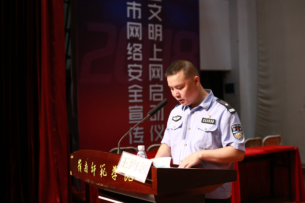 关注网络安全,坚守责任底线。王警官结合实际办案情况,向同学们列举了一系列违反网络安全法律法规的案例,其中包括传播或持有暴力恐怖视频、恶搞国家领导人形象,造谣滋事等内容。他表示,了解网络安全法律法规,规范自身上网行为是每一位公民应尽的义务,而作为高校学子更应积极树立文明上网意识,严格遵守《全国青少年网络文明公约》和坚决执行“七条底线”,共同维护网络安全乃至国家安全。