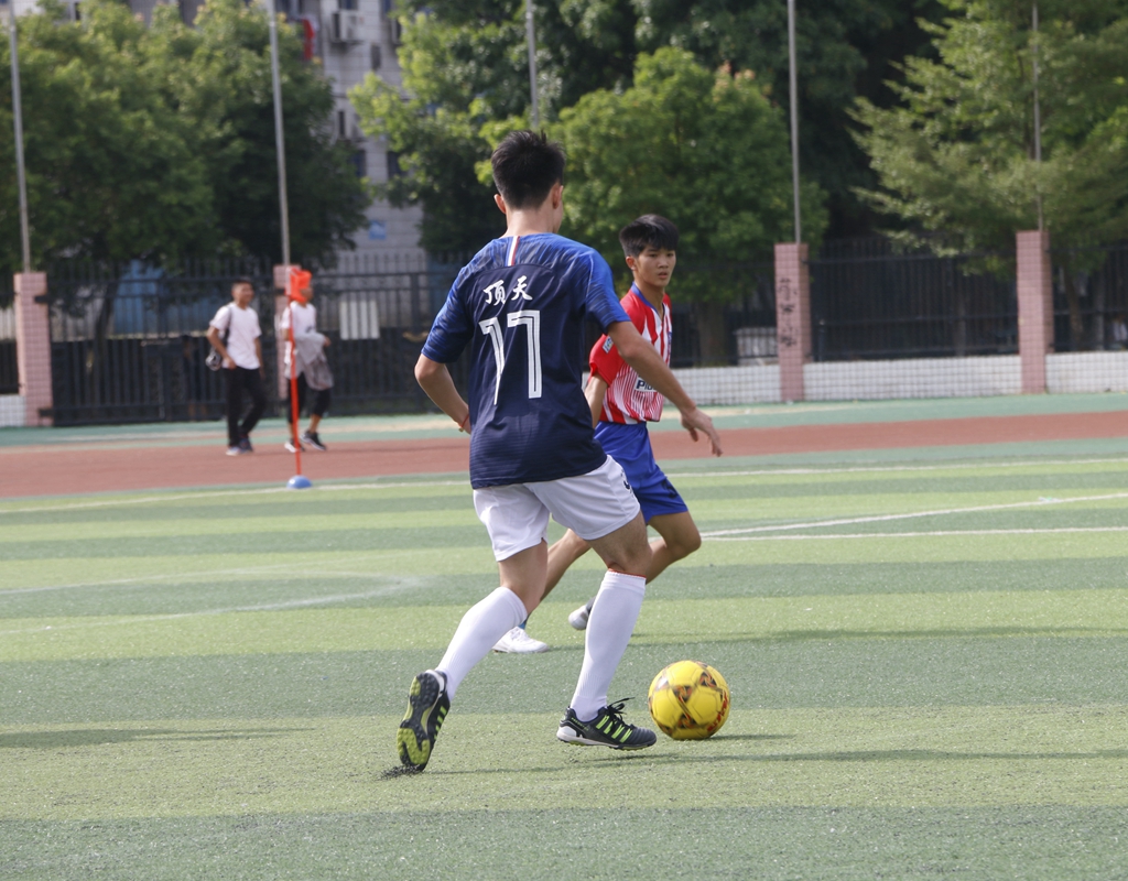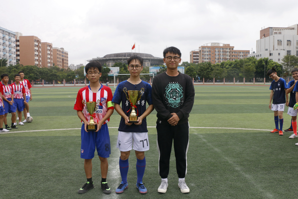 在微醺的阳光下,裁判的一声哨响拉开了决赛的序幕。上半场双方互有攻防,但收效甚微,只有零星的几脚射门威胁球门。双方均没有取得进球,上半场比分也定格在了0:0。下半场开场的形势依然胶着,紧张的气氛也一直环绕在球场上空。双方僵持十几分钟后,17法学队17号队员用一记进球打破僵局,为接下来的胜利奠定了基础。而比赛也在分秒流逝中被推向了高潮,双方队员以精湛的脚法、完美的盘带、犀利的射门以及精彩的配合博得场下观众的阵阵掌声。最终,17法学队以1:0的优势战胜18公力队赢得了此次第三届迎新杯足球赛的冠军,18公力队喜提亚军奖杯,杨振培、吴华宇和肖启旭则荣获优秀裁判奖。