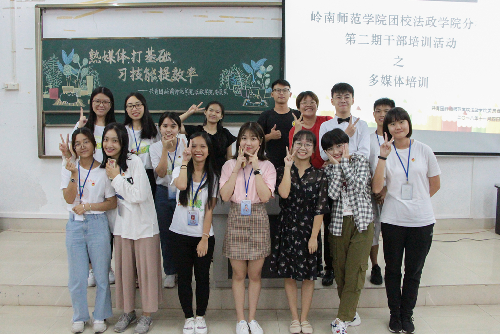 11月4日下午,岭南师范学院团校我院分校第二期干部培训活动之多媒体培训于弘雷楼611室开展。以“熟媒体,打基础,习技能,提效率”为主题,邀请我院学生联合会副职负责人邓湘湘、宣传中心政法经纬正职负责人林永怡、宣传中心新闻部副职负责人黎楚倩担任主讲嘉宾。