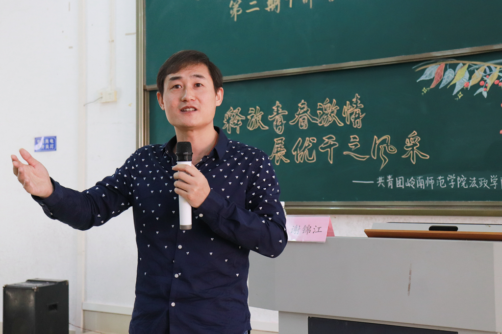 11月4日上午,我院于弘雷楼611教室举办了以“释放青春激情,展优干之风采”为题的岭南师范学院团校我院分校第二期学生干部培训活动。我院党委全柱副书记以及各学生组织指导老师出席本次培训活动,思政系谢锦江老师受邀为全体干部授课。
