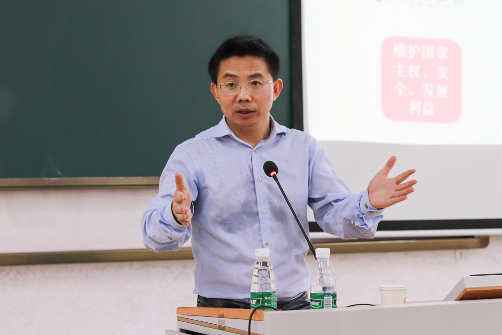 杨教授进一步提出“如何理解国家发展大局”这一问题,结合党的十九大报告中提出的“三个发展阶段”与在座师生进行了更加深入的讨论。他分别从政治层面、法律层面、行政层面、经济层面及社会层面等五种角度全面解读了粤港澳大湾区发展的基本路向,明确指出了以习近平新时代中国特色社会主义思想的新方略、新理念、新举措为统领指导的重要性,强调必须通过政治等多维并举的策略和手段才能使粤港澳地区更好地融入国家发展大局,实现长治久安的人心回归,令同学们受益匪浅。