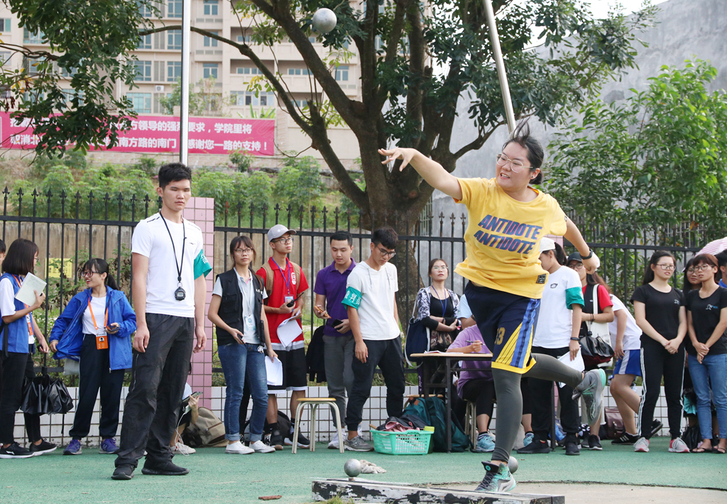 “天气不似如期,但要走,总要飞。”随着裁判下令女子普通组铅球比赛的开始,一道道完美的抛物线在铅球场上的运动员的手里画出,投入草坪与沙坑中。有一位健将,被法政人儿们寄予了厚望,每一投都牵动人心。两个半小时于紧张屏息中悄然流逝,最后一投在爆发的欢呼声中槌定冠军。