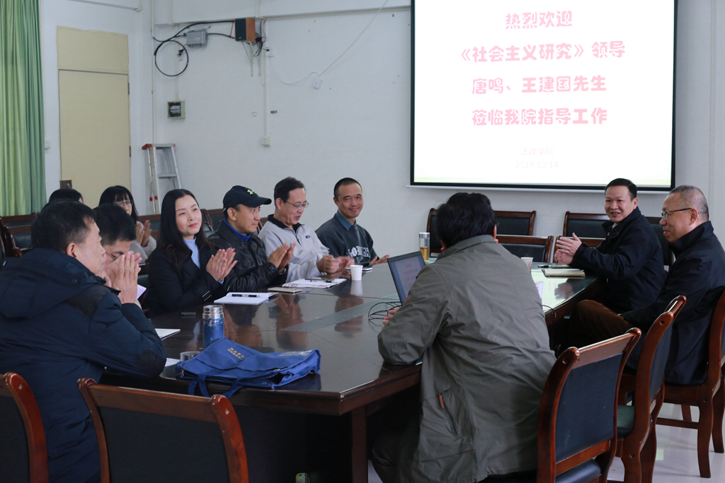 12月14日上午,我院于弘雷楼大会议室召开《社会主义研究》指导工作座谈会,特邀华中师范大学唐鸣教授及王建国教授担任本次座谈会的主讲人,与我院教师代表们开展了一场持续深入的学术交流。