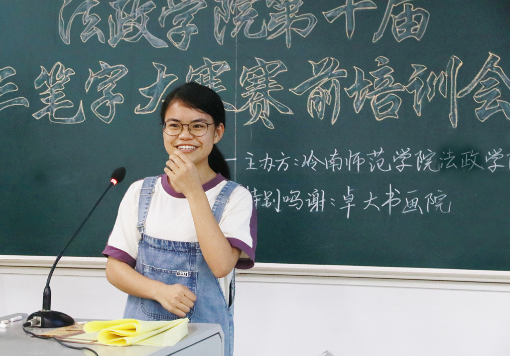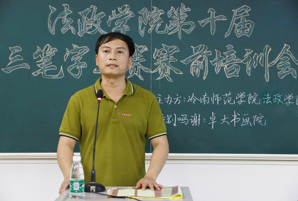 4月18日晚上,为帮助同学们提高三笔字书写技能、更好地迎接三笔字大赛的到来,我院于弘雷楼305室开展第十届三笔字大赛赛前培训会,特邀广东卓大书画院的卓大老师作为指导嘉宾。17、18级各班学生出席了本次培训会。