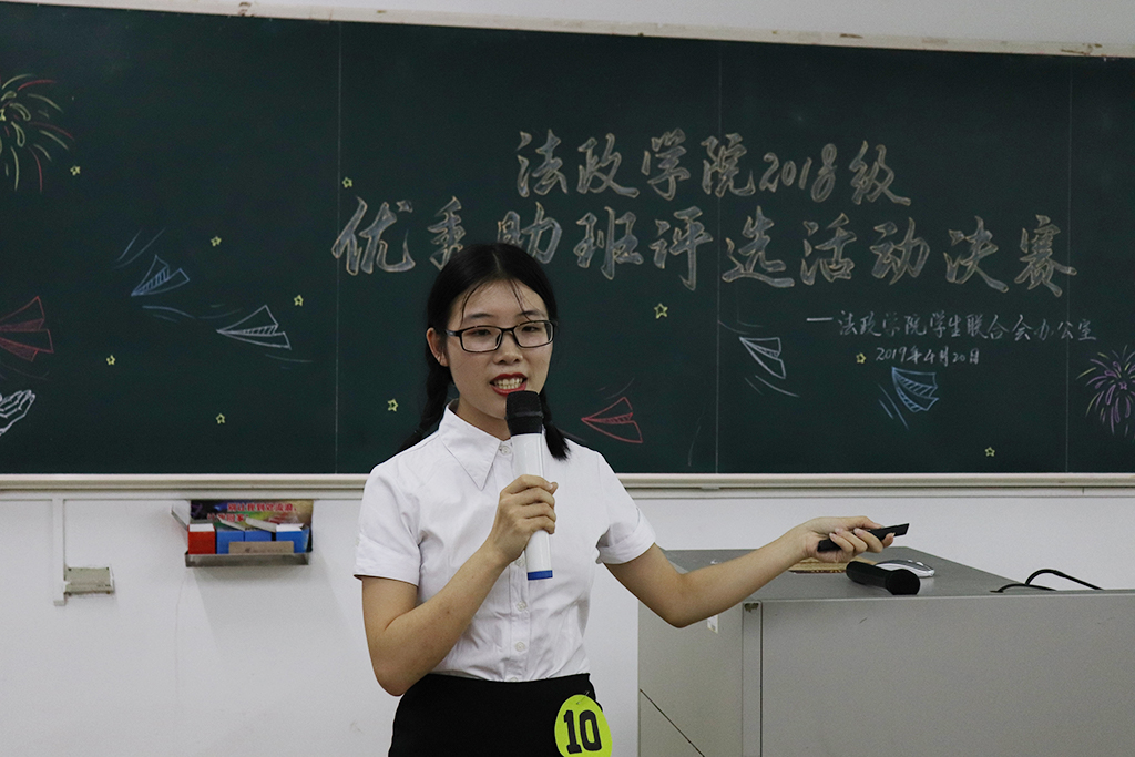 评选活动由演说和答辩两个环节构成。18级的9位助理班主任自信从容地利用PPT就班级管理、活动开展、自身建设等方面展开工作经验和成果的演说,各具特色的学风建设、工作计划等让人眼前一亮。其中,18思政1助理班主任罗绮婷利用多种网络学习资源来建设良好学风;18历史2班助理班主任徐玉青以师范生技能为主线,着力培养班级成员的专业素养和核心竞争力。而在答辩环节中,助理班主任针对班委建设、时间管理、角色定位等问题进行机智、详细的回答。