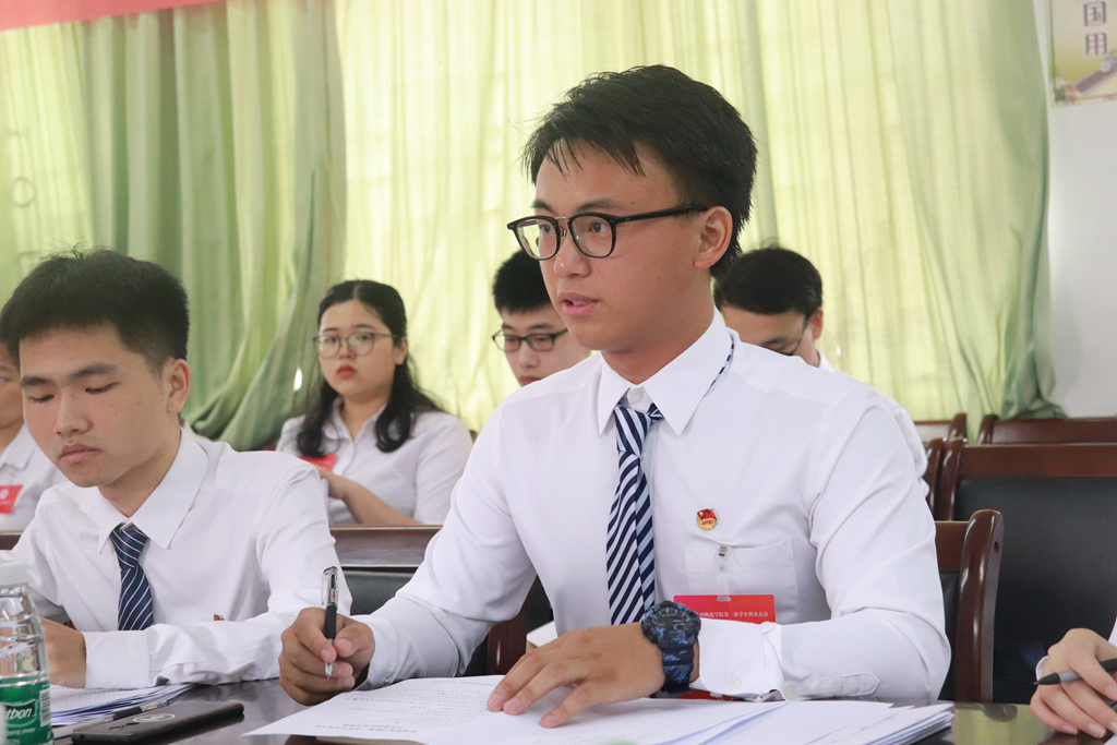 会议第一项议程为推选岭南师范学院第一次学生代表大会各代表团团长、副团长,在代表团成员的一致鼓掌表决声中,第一项议程顺利完成。会议第二项议程为酝酿学生代表大会主席团成员和秘书长建议名单,各学生代表经过深思熟虑,一致同意通过主席团成员及秘书长建议名单。第三代表团全体学生代表认真阅读了岭南师范学院第一次学生代表大会的大会议程,由陈天伦宣读大会注意事项,确保岭南师范学院第一次学生代表大会的顺利进行。