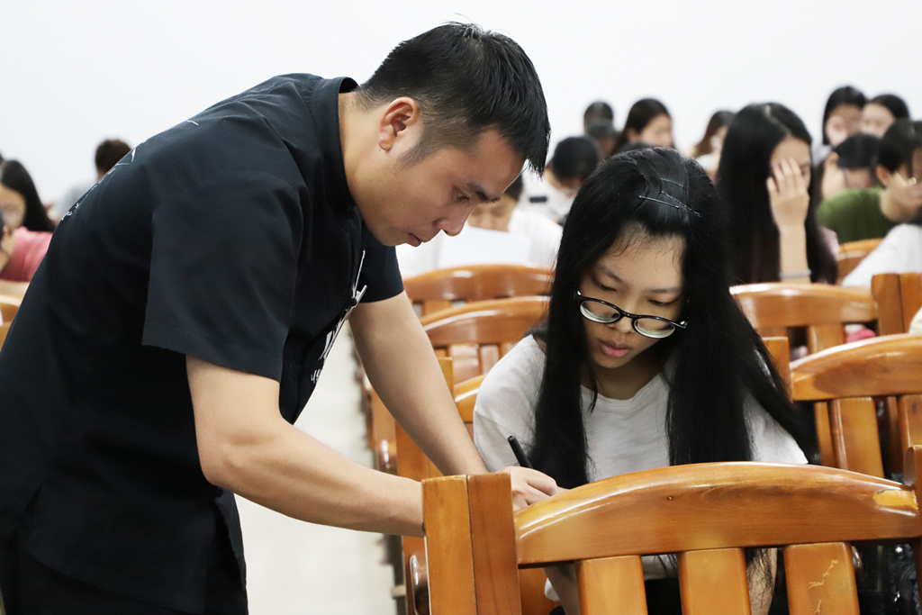 5月17日晚,为使师范生更好地掌握三笔字书写技巧,进一步提高师范生技能水平,我院于弘雷楼107室、203室及305室举办以“任笔为体,以梦为墨,挥洒学子豪情”为主题的第二期2018级师范生三笔字培训活动。本次活动邀请了卓大书画院的卓荣、廖思炯以及何进学老师进行授课指导。
