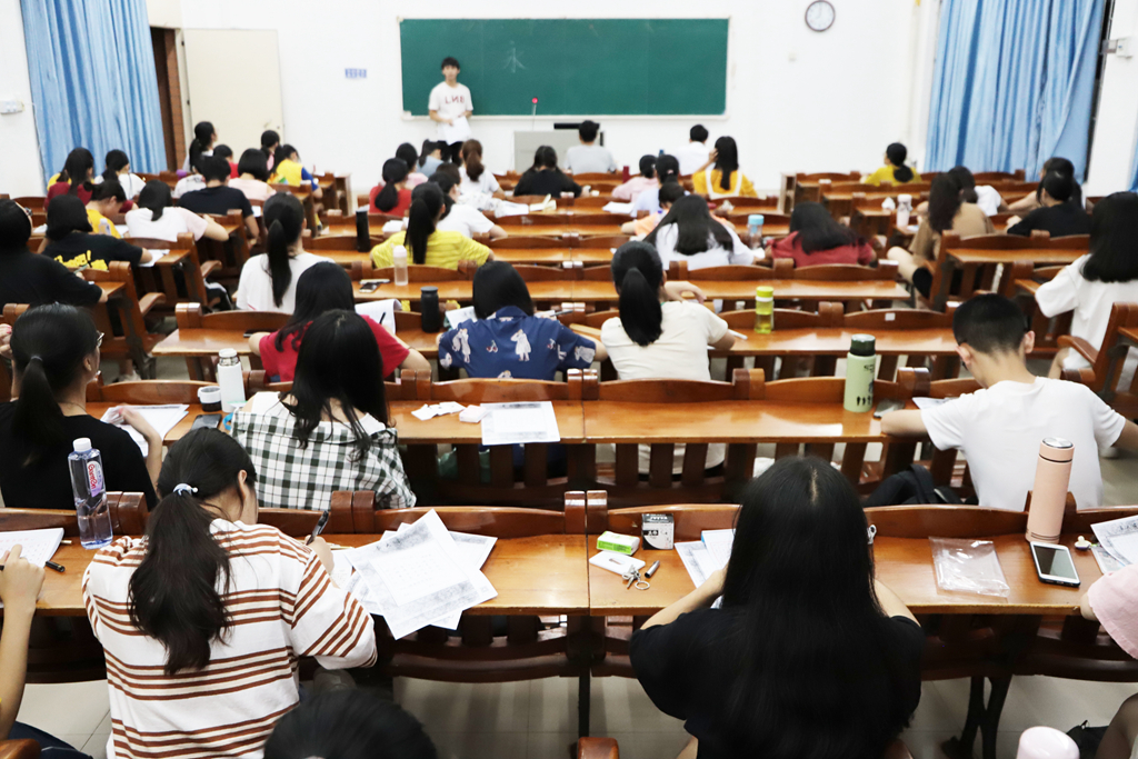 在实践环节,同学们静气凝神,一心倾注于书写娟秀字体,三位授课老师也予以耐心辅导,与同学们进行互动交流,为同学们答疑解惑,形成了浓郁的书法学习氛围。
