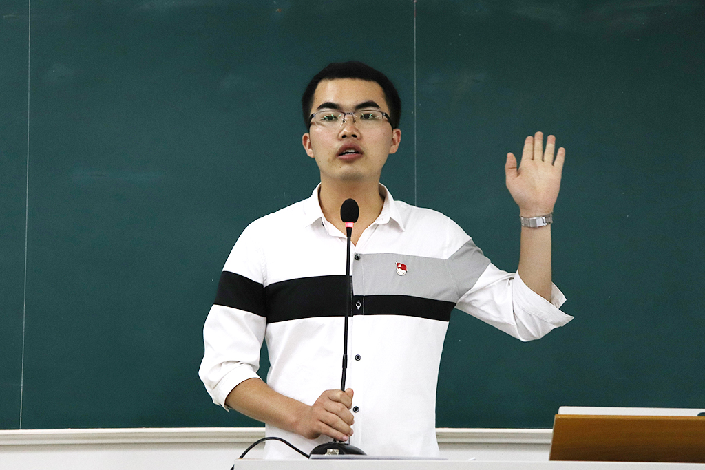 首先,学生第一党支部党员黎锐楷同志以“复兴路上,中国风华正茂 人生路上,青年大有作为”为主题为全体学生党员上了一堂党课。围绕青年与时代的关系,他从“时”、“运”、“势”、“命”四个方面出发,向在座党员提出四点建议:一、认清新时代局势,找准新时代历史定位,担当新使命;二、牢牢把握中国青年运动的正确方向,响应党的号召;三、紧跟时代大趋势,坚持团学组织的引领,不断创新工作思路;四、贯彻落实习近平总书记对青年成长的“六大希望”寄语,修身练功,勇担使命,积极发挥作为岭师学子的青年力量。