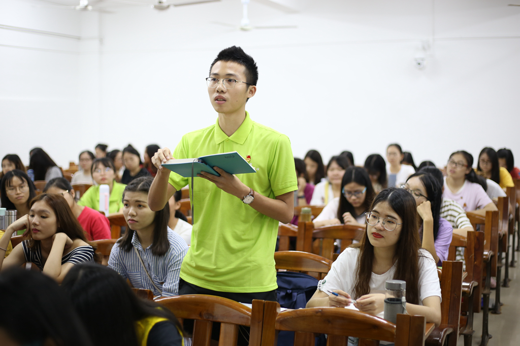 活动伊始,该小组四个分队依次上台进行汇报展示。四个分队分别对赤坎区关工委常务副主任田欣民爷爷、学校档案馆馆长周美兰、我院辅导员童慧丹老师以及思政系刘明贤博士进行了采访,四位采访者均为中共党员,在个人发展历程及工作成绩上皆可圈可点。各分队在聆听关于采访者与党的故事之后,和座下人员汇报了采访所获,并就如何成为一名合格的中共党员分享了几点建议:一、珍惜和平生活,坚定政治立场,做到爱党、敬党、守党、护党;二、培养专业素质,提高师范生技能,明确“学习强国”的观念;三、“打铁还需自身硬”,增强使命感和责任感,努力提高党性修养,牢记使命,以青春之我,报强盛之国。