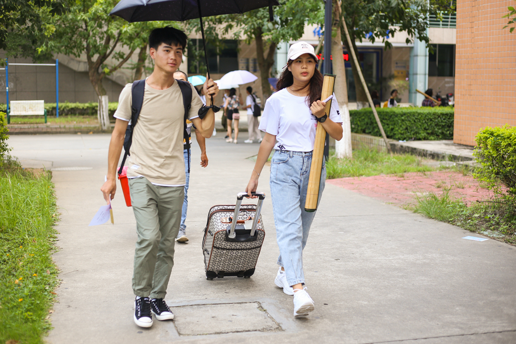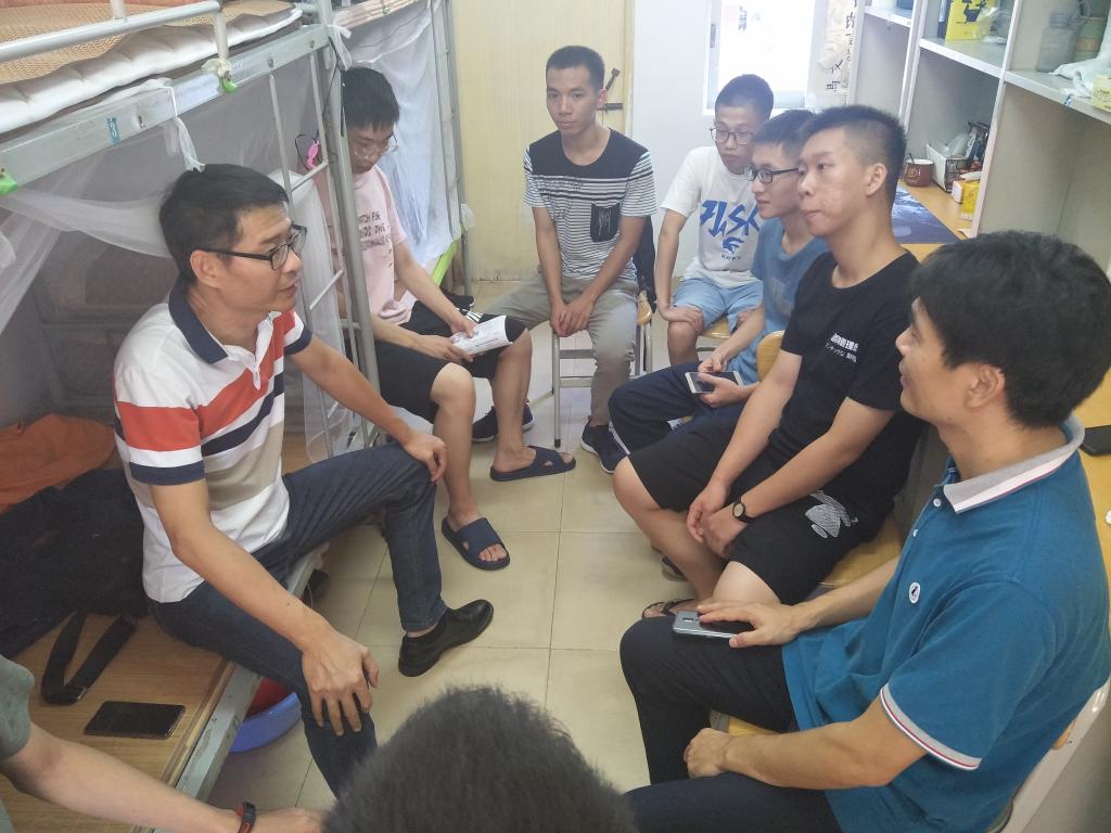 辅导员老师与学生亲切交谈(黄万童摄)