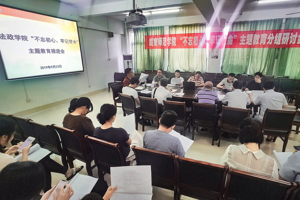 为贯彻落实中央和省委有关部署要求和《岭南师范学院开展“不忘初心、牢记使命”主题教育实施方案》工作要求,9月23日上午,我院于学院会议室召开“不忘初心、牢记使命”主题教育推进会。该院领导班子成员、副处级以上干部、党委委员、各党支部书记和支委、全体辅导员和主题教育办公室全体工作人员出席了会议。