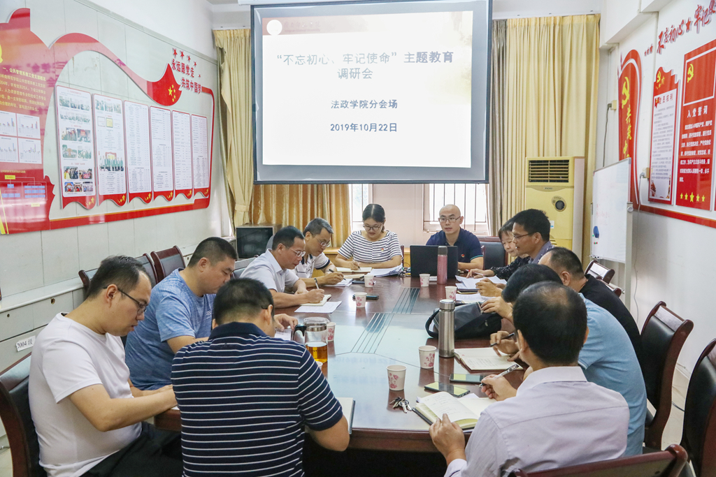 为确保主题教育工作顺利进行,扎实做好检查整改,10月22日上午,学校党委王恒胤副书记带队到访我院开展“不忘初心、牢记使命”主题教育调研会。