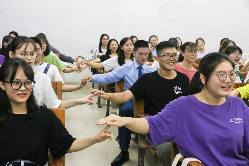 同时,“击鼓传花”等游戏环节的设置使现场人员进一步拉近了彼此的距离,起到了活跃气氛的作用。现场人员写下心愿寄语之际,活动也接近尾声。今年新结对引领对象代表洪绚佳同学上台发表感言,从学习、生活、人际交往三方面进行分享,表达了对于雷阳启航活动的感激与期待。