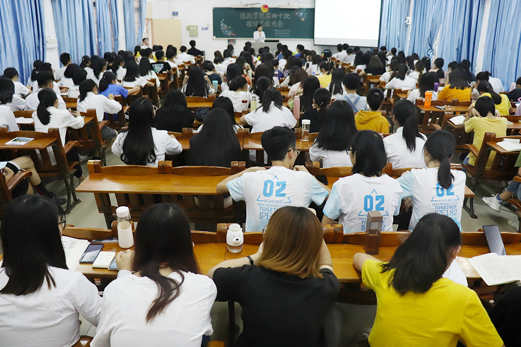 本次推优大会共有126位优秀团员成功推优为入党积极分子。在主持人宣读本次推优大会规章制度之后,会议正式拉开了帷幕。会上,17、18与19级各团支部依次通过PPT的形式,围绕“思想、学习、工作、生活”四个方面对本支部推优成功对象的基本达标情况进行了客观、简要的汇报。为进一步考察推优对象的思想觉悟,院团委副职负责人梁嘉伟和徐娟对部分推优对象进行提问,各推优对象的良好表现赢得了座下干事们的一致认可。