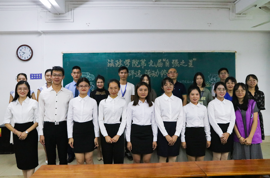 为了进一步弘扬法政学子们自立自强的精神和坚韧不拔的品质,11月9日,我院于弘雷楼205室举办第九届“自强之星”评选活动决赛。我院勤工助学中心指导老师何一明、校自强社干部黄国雄、勤工助学中心正职负责人黄梦婷、爱心基金管理委员会正职负责人莫紫娟、第八届励志之星张琼珠以及我院各学生组织干部代表均出席了本次活动。