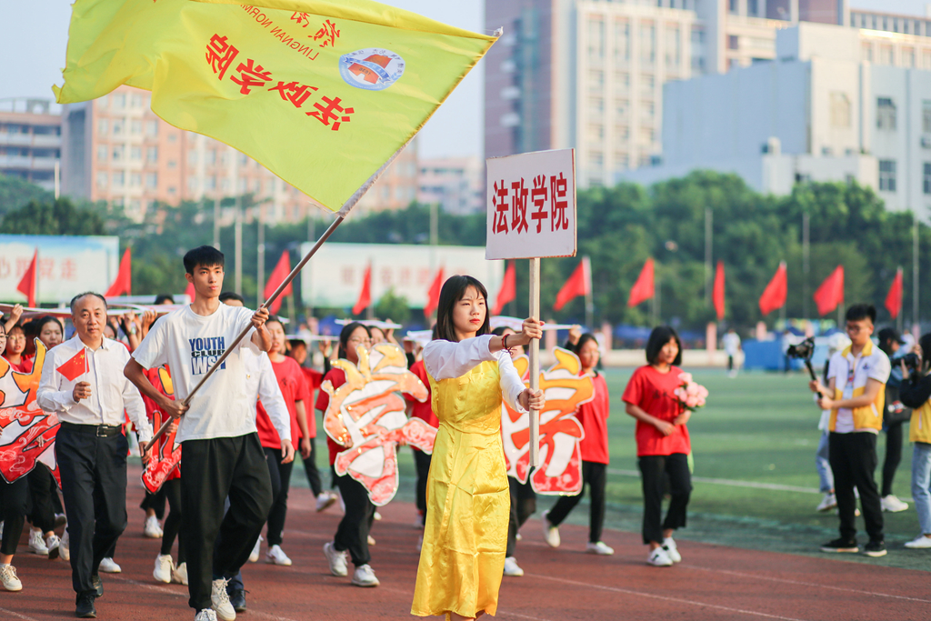 伴随着雄壮激昂的运动员进行曲,我院代表团方阵队伍昂首步入会场。整齐铿锵的步伐展示团结奋进的集体,响亮的口号彰显着满腔的壮志,挺拔的身姿焕发着奋斗的精神,方阵队伍全体成员大道高歌,意气风发,保持着阔步前行的态势,坚定的目光憧憬灿烂未来,面庞洋溢着青春的自信,体现出法政学子朝气蓬勃、奋勇进取的卓越风采。
