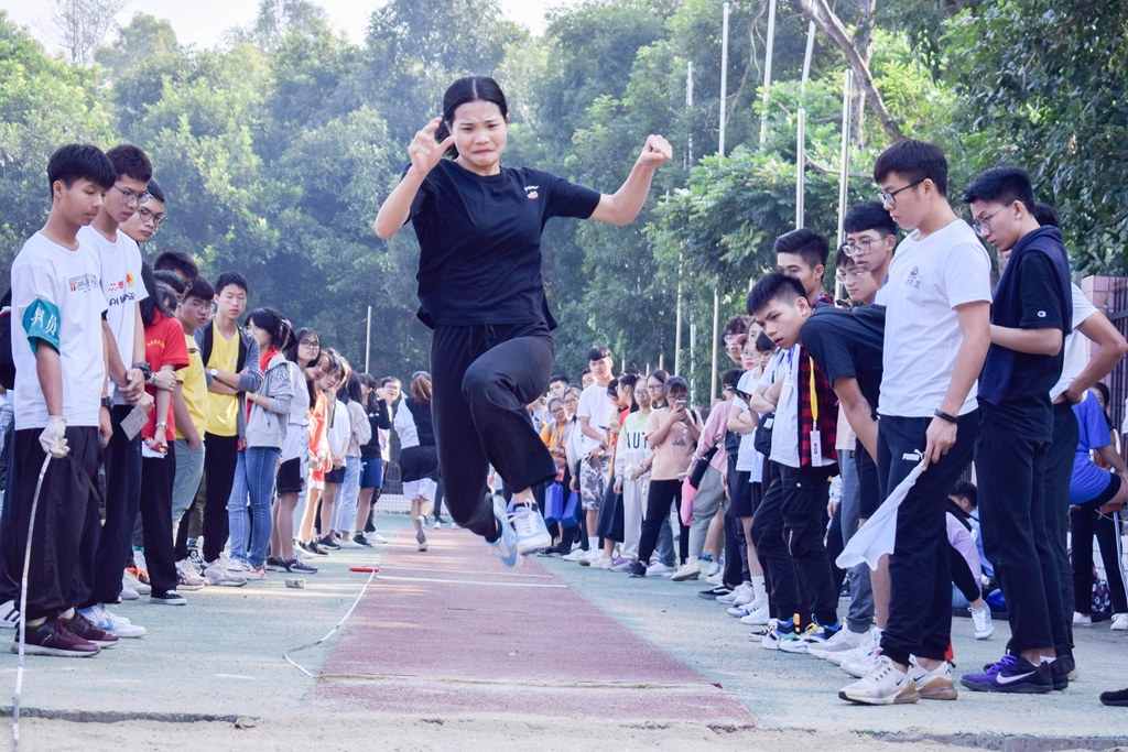 仲冬十一悄然来临,微亮清晨的些许凉意,也在艳阳高照的上午被同学们似火的热情驱赶后消散。来自18级法学1班的钟伟媚在小小的一方沙池,开启了她激情满满的拼搏,并一举斩获女子普通组跳远比赛的季军。对过程认真,对结果乐观是她对自己的评价。