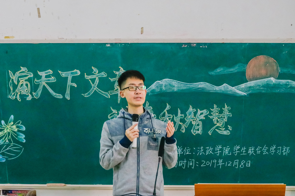 12月8日上午,我院学生联合会学习部于弘雷楼511室举办以“演天下文章,讲千秋智慧”为主题的第四届师范技能系列培训之“演讲与口才”经验分享会,邀请了17法学2班李金诚同学与18法学1班李泽慧同学作为主讲嘉宾,我院19级全体师范生及部分非师范生出席了本次活动。