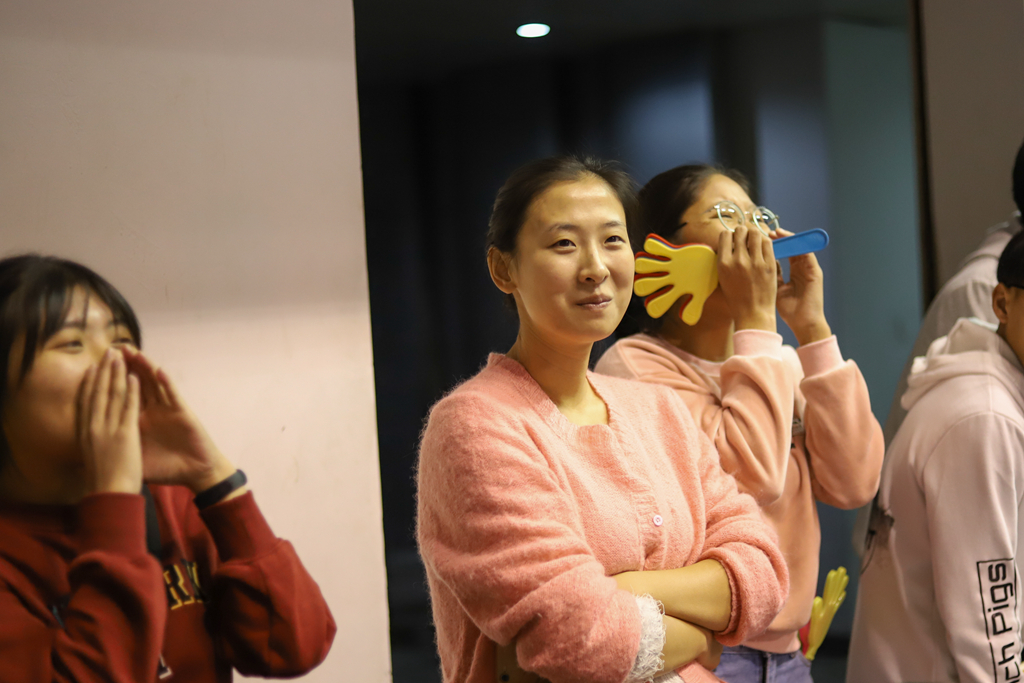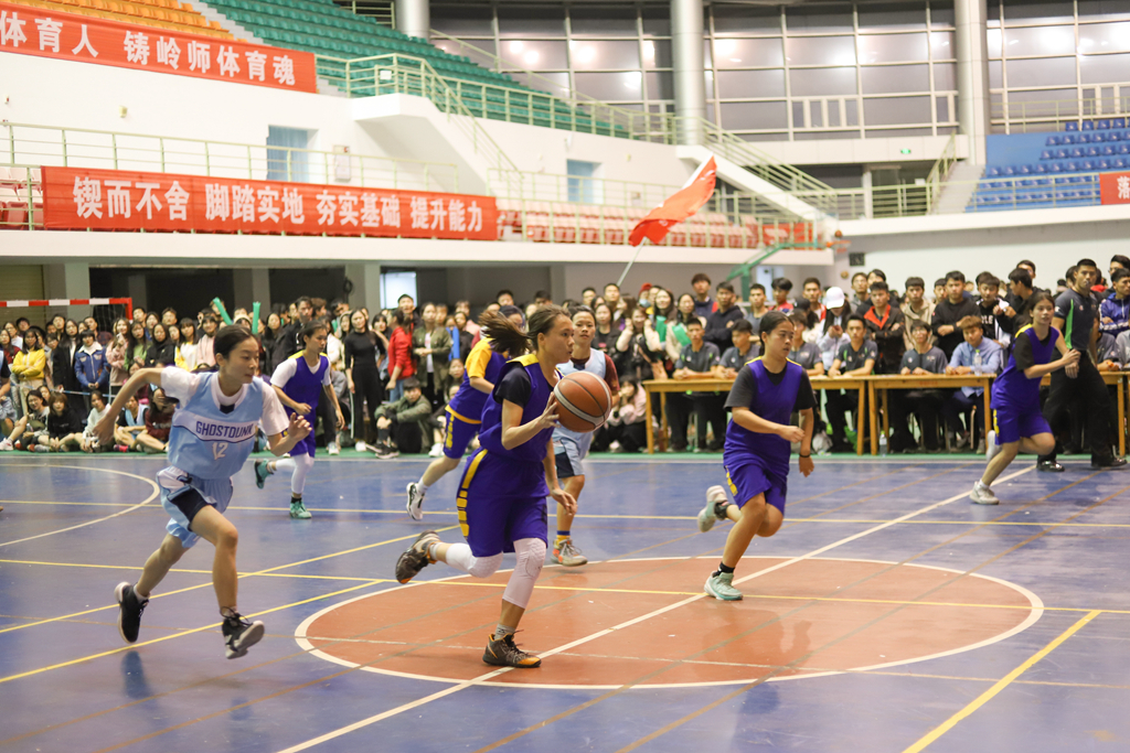 7日晚,体育馆内人潮拥挤,灯火辉煌,呐喊欢呼声此起彼伏。女篮队员们赛前的积极热身运动,观众们的翘首以望,辅导员侯美老师更是现身赛场为运动健儿们加油助威。