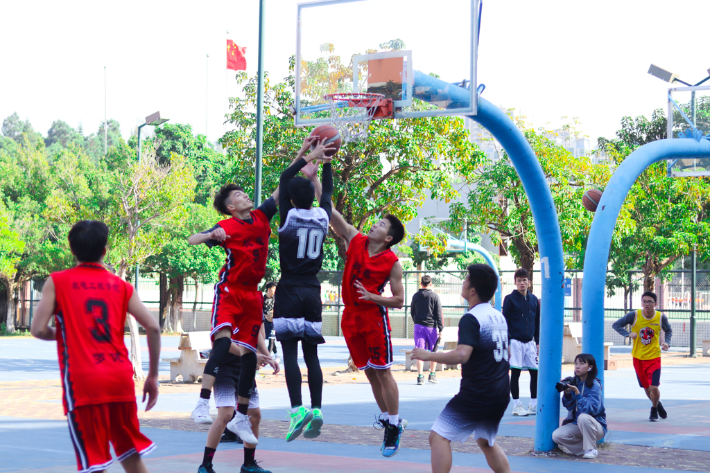 而7日下午于雷阳球场展开的男篮比赛也是夺人眼球。伴随裁判一声令下,法政男篮与机电男篮的激烈角逐就此展开。“继续防守,不要害怕。”场下的队员齐声呐喊,场上的球员奋力拼搏。上半场比赛中,双方旗鼓相当,以17:17打成平手。在短暂的休息后,经过紧锣密鼓地商量决策的法政男篮们,熟练的传球,默契的配合,严密的防守成功拉开比分,最终以23:33的比分一举拿下此次比赛的胜利。