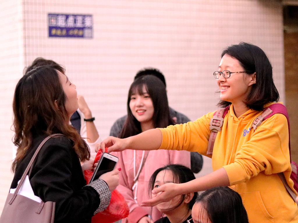 童慧丹老师为考研学子送温暖(张晓岚摄)