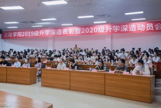 为表彰法政学院19级升学深造成功的学子,进一步调动20级学生升学深造的积极性,营造浓厚的学院升学深造氛围,积极推进学院优良学风建设。6月2日晚,法政学院于弘雷楼311室隆重举办了19级升学深造表彰暨20级升学深造动员会议。法政学院领导班子成员、各党支部书记、系主任、20级班主任、研越考研机构负责人欧阳佳、全体辅导员、19级升学深造成功学子代表和20级升学深造学子参加了本次会议。