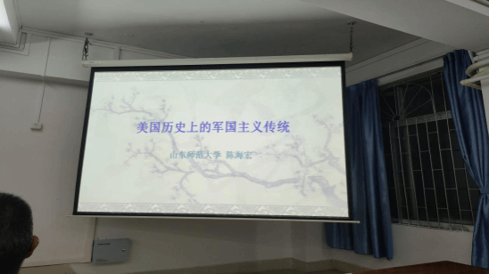 2023年10月13日晚上,为了深刻理解世界形势,追溯现实问题的历史根源,积极开拓学术视野,岭南师范学院法政学院、广东西部历史与海洋文化研究中心邀请山东师范大学陈海宏教授莅临我校,在弘雷楼705室举办题为“美国历史上的军国主义传统”学术讲座。讲座由法政学院副院长于卫青教授主持,历史系主任景东升教授、谌焕义教授等历史系师生参加了本次讲座。