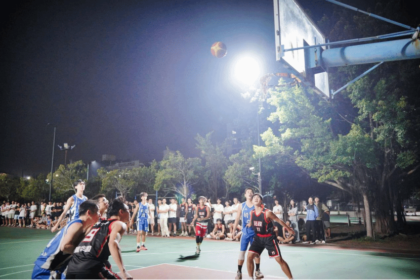 走进篮球赛场,首先映入眼帘的是宽阔的篮球场和四周高高悬挂的灯光。灯光下,篮球场的地板清晰地映出运动员们正在热身的身影,场边站满了热情高涨的观众。11月12日晚,岭南师范学院第三十届“三好杯”男篮半决赛于雷阳篮球场五号场展开,法政男篮作为其中一支队伍参赛。法政学院党委副书记易贤,全体辅导员老师现身赛场,为法政篮球健儿喝彩加油。