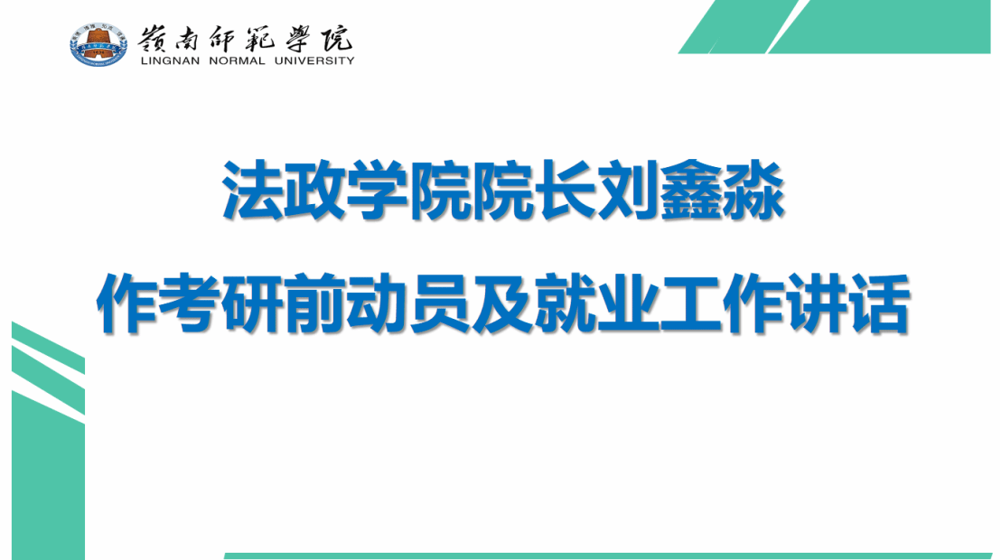 刘鑫淼作考研前动员讲话。他首先对同学们在备考过程中所付出的努力和取得的进步表示了肯定,接着对考研学子们提出了三点希望:一是要坚定考研信心,希望同学们珍惜最后一个月的冲刺时间,全力以赴,为自己的升学梦想努力奋斗。他强调,考研是一个塑造自我、强大自我的过程,是对决心与毅力的考验,同学们要相信坚持就能取得胜利。二是要坚持学习,永不止步。他表示,希望同学们的学涯不是止步于岭师,要通过考研努力发掘自身潜能,不断挑战自我,力争进入更加广阔学术天地去丰富自身。三是要发扬敢于斗争的精神,面对困难要敢于亮剑,相信“狭路相逢勇者胜”。他指出,考研不仅是一场知识的较量,更是一场心理的博弈,希望同学们在保持平和的心态的基础上,以坚定的信念、顽强的毅力和更加饱满的精神迎接考研的挑战。最后,刘鑫淼表示,希望全体考研学子都能如愿上岸,一战成硕。