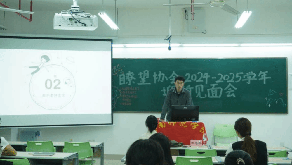 紧接着,瞭望协会指导老师邢恩源上台发言。立足于瞭望协会未来发展向好的趋势,他着重强调了学习时政热点对青年人思想培养的重要性,并鼓励每一位会员深入学习马克思主义哲学著作,不断以新思想武装自身,努力成长为担当时代重任的时代新人。