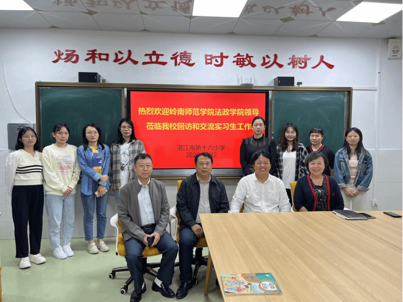 2024年11月22日下午,法政学院党委书记李德深、副院长娄伟到湛江市第十六小学走访实习生,与该校校长李水佺、副校长陈婷进行了一场实习生工作交流会。此次活动旨在加强师范生教育实习工作,了解实习生在十六小三个多月以来的工作表现,探讨如何进一步提升实习生的教育教学能力和专业素养等。十六小四年级全体班主任兼指导老师和21级思想政治教育专业实习生参加了交流会。陈婷副校长主持会议。