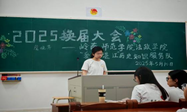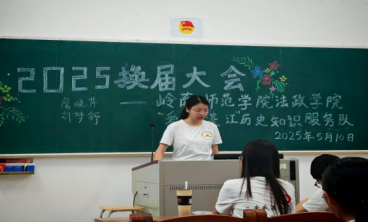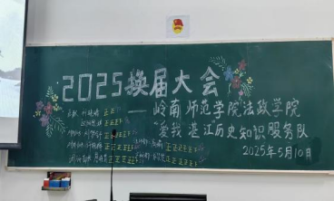 为进一步完善团队建设,促进各部门之间协调发展,优化团队内部管理,从而促进团队长远发展,法政学院“爱我湛江”历史知识服务队于5月10日晚在教三106室顺利举行了换届大会,并选举出服务队的新任队长团和部长团,为服务队增添新生力量。