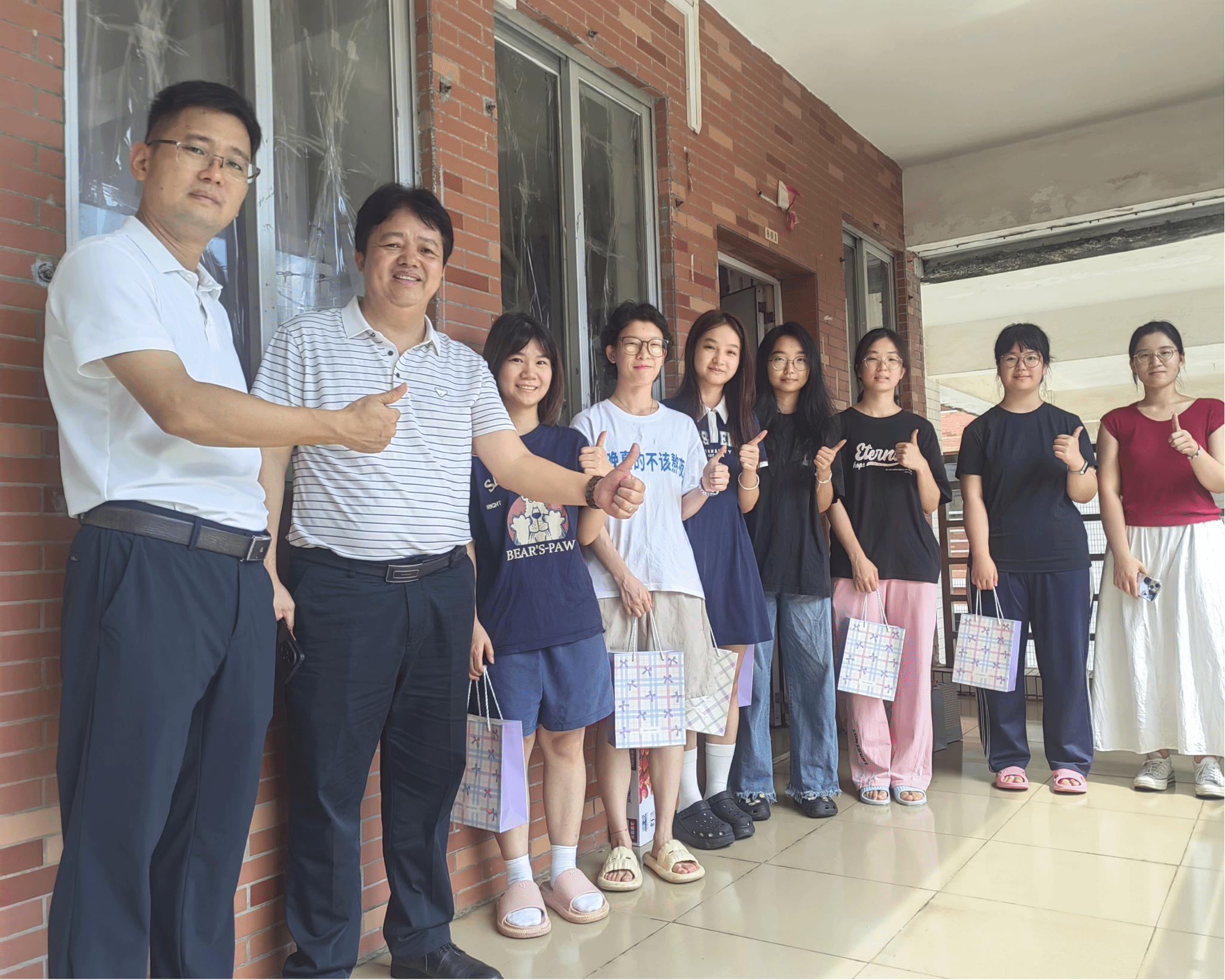 员赵欢、黄诗娜老师一同深入宿舍苑区慰问2026届留校备考学生。