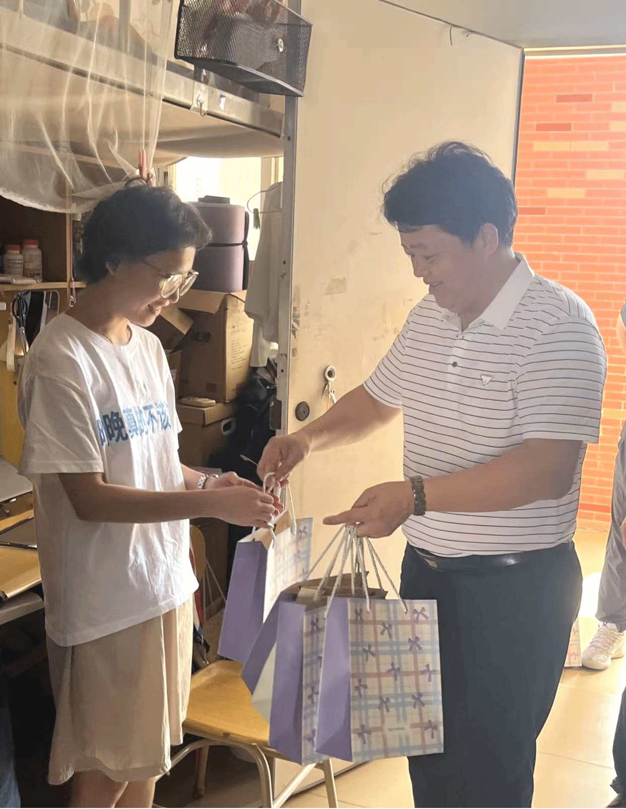 最后,李德深和易贤将精心准备的慰问礼包发放到同学们手中,每一份礼包都寄托着学院对留校备考学子们的殷切期望与祝福,让法政学子们在炎炎夏日感受到法政大家庭的温暖。同学们纷纷对老师的关心予以回应,并表示定会竭尽所能,全力以赴,努力考出好成绩,