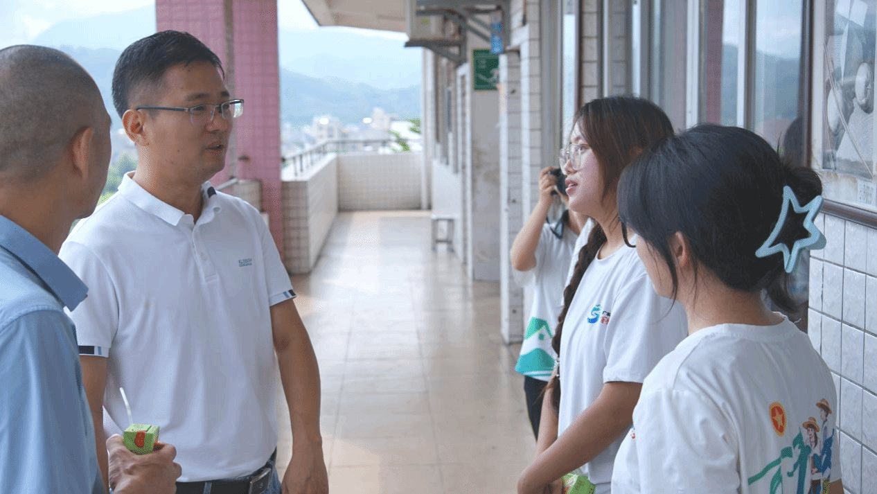 2025年7月14日,学院党委副书记易贤、团委书记赵欢、历史系孙建伟博士一行赴茂名市信宜水口中学走访慰问参加2025年暑期“三下乡”社会实践活动暨“百千万工程”突击队行动的“信启”突击队志愿者,代表学院给队员们送去关怀,受到了水口中学杨大权校长、甘君寿副校长以及“信启”突击队全体志愿者的热烈欢迎。