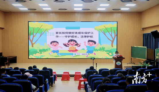 在校园专题讲座方面,“护苗行动”突击队主动下沉基层,深入白蕉镇,联合当地教育部门、学校及社区力量,走进灯笼中心小学、白蕉镇中心小学、东和小学、东湖小学、成裕小学、六乡中心小学6所学校,以定制化专题讲座为核心举措,构建“家-校-社”三位一体未成年人保护体系,为辖区未成年人暑期安全保驾护航。截至目前,系列讲座已累计举办6场,覆盖师生及家长超3000 人次。为确保安全宣讲更具针对性,突击队在活动前期通过与6所学校负责人座谈、发放问卷等方式,精准掌握了各校家长对暑期安全教育的需求痛点,突击队依据实际需求,围绕“防溺水”“防性侵”“网络安全”三大核心主题,为每所学校量身设计讲座内容。讲座打破传统说教模式,采用“案例剖析+实操演示+互动答疑”的形式,让安全知识更接地气、更易被吸收。灯笼中心小学周校长表示,学校会持续通过开展主题班会、专题讲座以及心理测评等方式,支持斗门区“双百行动”未成年人保护工作部署。