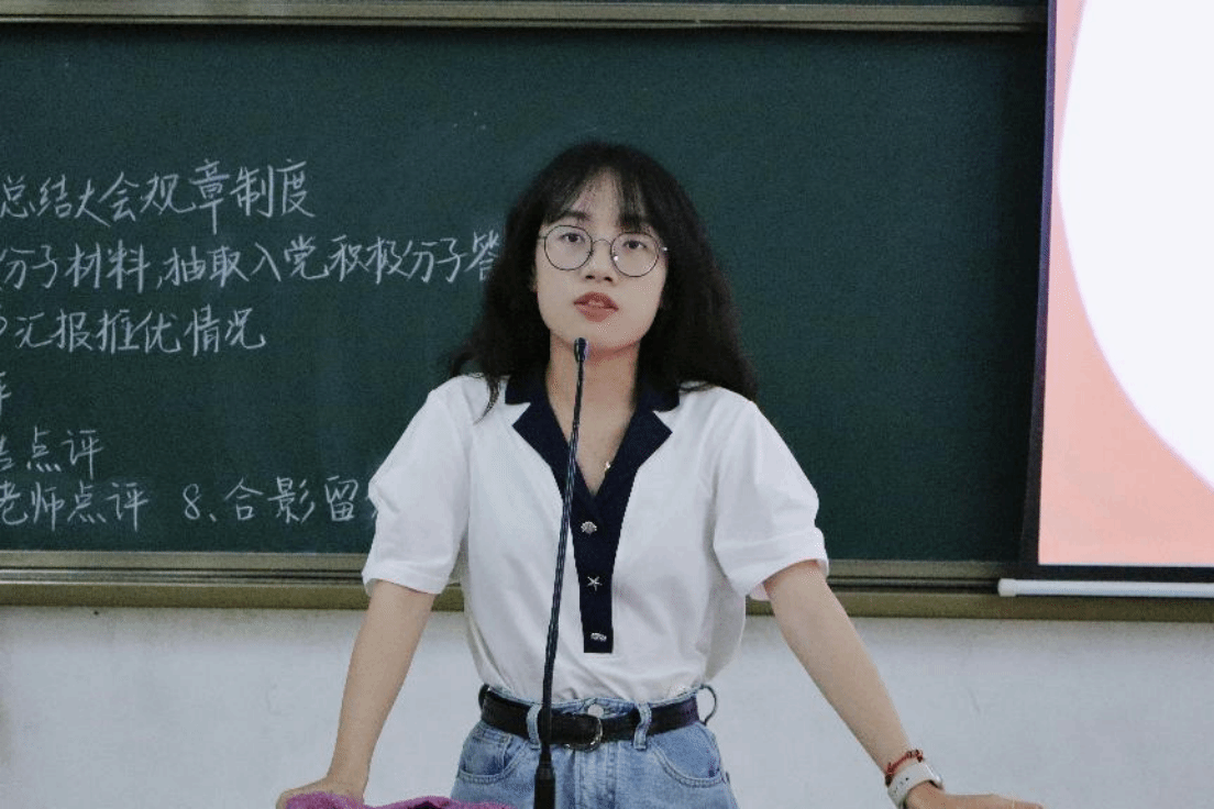会议在全体人员合唱团歌《光荣啊,中国共青团》中拉开序幕。随后,各年级基层团支部代表通过PPT演示,从思想、学习、工作以及生活四个方面向党组织汇报各入党积极分子的基本情况。