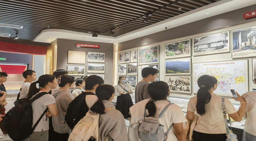 活动伊始,纪念馆的女讲解员以生动翔实的讲解,带领学生社团成员们开启了一段跨越时空的红色之旅。讲解员循着历史脉络,结合馆内珍贵的革命文物、详实的文献资料和生动的场景复原,深情讲述了粤桂边区革命斗争时期的峥嵘岁月,将革命先辈们为民族解放、人民幸福而浴血奋战的感人故事娓娓道来。同学们认真聆听、驻足凝视,仿佛置身于那段烽火连天的革命年代,深切体会到革命胜利的来之不易与革命先辈的崇高信仰。