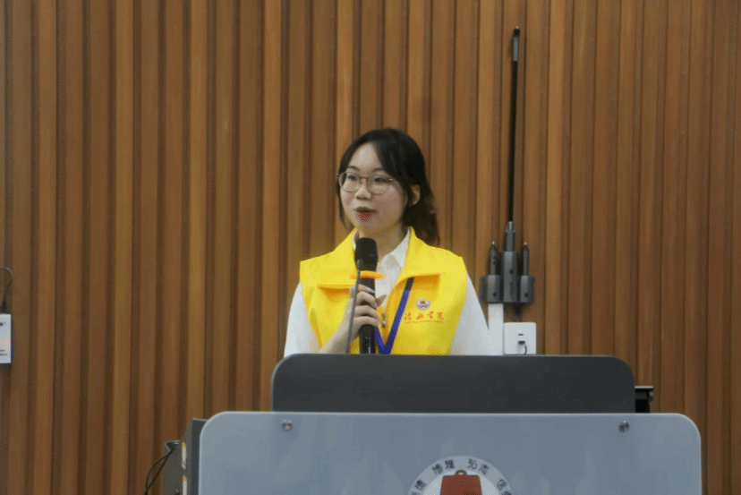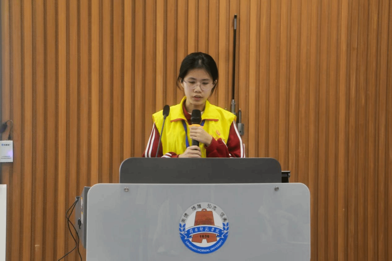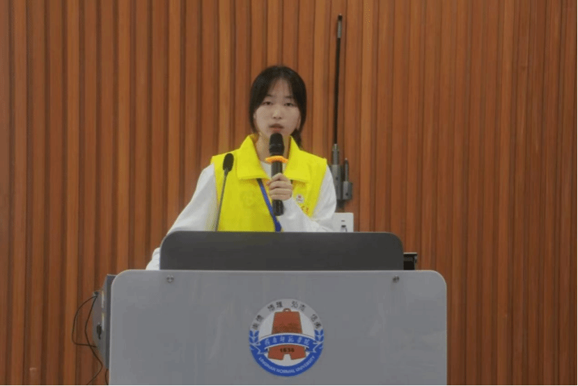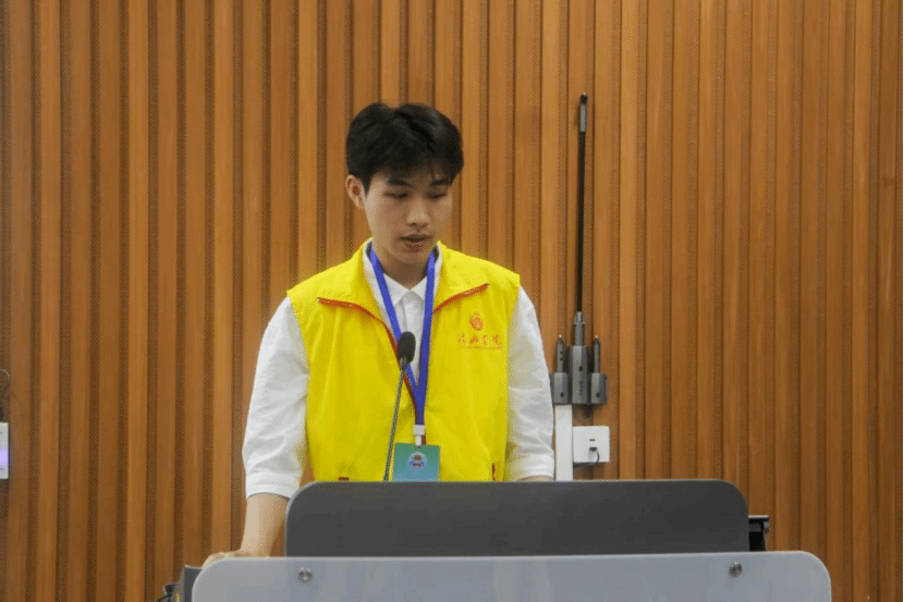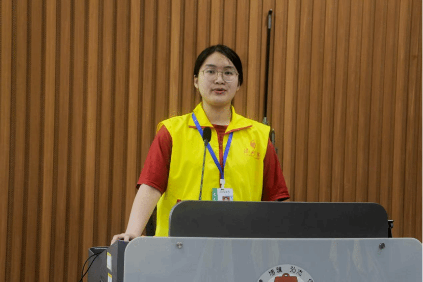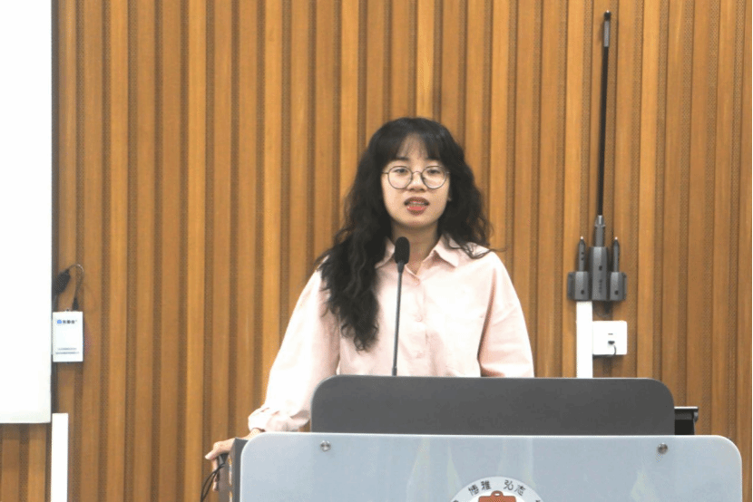 2023级历史一班班长陈栩霖作为法政学院先进班集体代表发言。她围绕班规制定、思想建设、综合素质、社会服务等方面进行经验分享,希望各班级能够借鉴优秀经验,汲取有效措施,共建先进班集体。