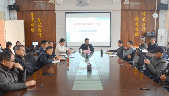 2月28日,学校党委常委、宣传部长刘坤章到法政学院指导新学期工作,传达学校2024年度工作会议精神,并对该院2024年春季学期工作提出指导意见。会议由法政学院党委书记李德深主持,学院领导班子及全体教职工参加。