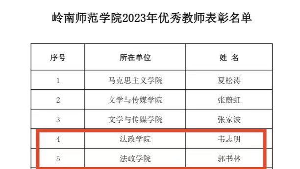 岭南师范学院2023年优秀教师:韦志明、郭书林