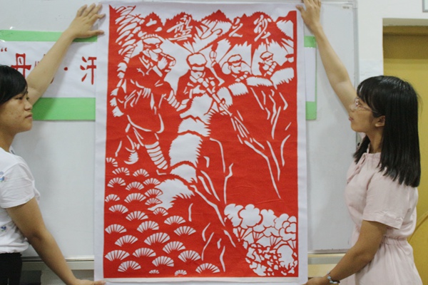 岭师新闻中心讯:4月16日傍晚,校关工委组织流芳文化团所属“丹心·汗青”剪纸艺术班的全体学员在燕岭阁二楼声乐室举行培训课。校关工委庞景才秘书长、郑光华老师以及流芳文化团剪纸组成员参加了此次活动。 郑光华在活动中对“中国剪纸艺术探源”进行了详细讲解。她通过中国民间剪纸艺术的来源及其发展,勉励在场学生要勤学长征精神,学习“红军不怕远征难”的历史,使师生认识到在校园开展“以文化人”、“以史育人”的集会同样可采取符合时代与青年需要的集思想性,文化性与观赏性于一体的红色经典艺术精品的形式。她希望学生们可以做到对历史温故而知新,促进自己的全面发展,在实践中增长自己的知识和才干。 庞景才认为在市场经济的影响下,人们对物质的追求较为激进,甚至出现对历史歪解的现象,因此对大学生进行国史党史的教育是很有意义的,十分必要的。庞景才鼓励学生可以通过自己设计剪纸主题,在亲自动手剪纸的过程中不断学习红军长征精神,在创作过程中对历史进行深入了解及思考。 “红军长征历史”融入剪纸艺术之中,这个活动让学生们觉得非常新颖有趣。“这个活动很有趣也很有意义,不仅可以从中学到许多历史知识,还能将古板的知识与灵活的剪纸艺术融合在一起,十分有趣!”参与此次活动的陈炜怡同学说。 同学们倾注自己对历史的缅怀精神,运用剪纸艺术的方式向我们展示了一段段磅礴的红色经典故事。《红军不怕远征难》、《六盘山之战》、《遵义会议》、《飞夺泸定桥》等作品展示出中国共产党的发展历史、红军长征的历史足迹、革命先烈的英勇事迹以及战斗战役的情景等。展览会上,大家驻足观赏,拍照留念,追忆历史,缅怀先烈,升华情感,爱党爱国。 来源:新闻中心 作者/徐素 叶玉君 摄影/彭嘉敏