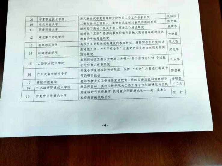 根据《关于申报教育部关工委2018年度研究课题结题的通知》的工作安排,课题研究期限为2年。教育部关工委2020年7月启动了2018年度教育部关工委研究课题结题评审工作,共收到23项课题结题材料,经审核评定,共有19项课题为合格结项课题,其中,广东省仅有岭南师范学院和广东茂名市桥南小学2所学校顺利结题。该课题的深入研究,持续为青少年思想道德建设作出独特贡献。