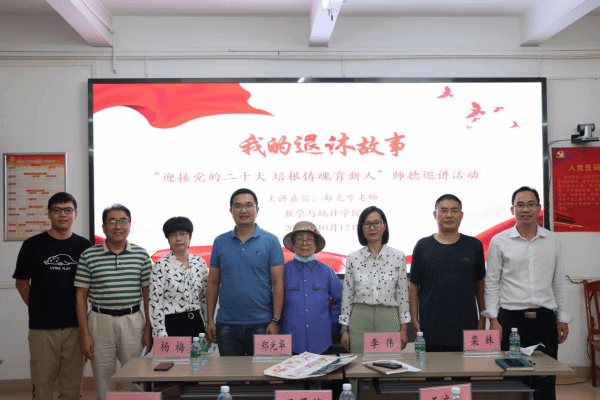 会上,郑光华老师做“我的退休故事”的师德主题宣讲,分享了她为同学服务的退休故事。郑光华老师离开了数学讲台,然而没有离开同学们,她退休后拿起了“四史”读本,始终带头学习和弘扬社会主义核心价值观,用自己的模范行为和高尚人格感召学生、带动学生学党史、铭党恩、跟党走。平时还收集有关学生教育的彩图和信息剪纸,装订成册供学生阅读。创办了谈心亭,帮助学生排忧解难,积极呵护关爱学生成长,引导好学生的健康成长。同时,她带领学生开展各种“红色”活动,把“红船精神”“井冈山精神”“长征精神”等融入活动中,用“刻纸”的艺术形式来承载“读四史”的爱国爱党教育,引领学生学党史、明国情、做表率。郑光华老师表示晚年的人生追求和最向往的境界是和同学们一道学习与传承“四史”中的英雄故事。